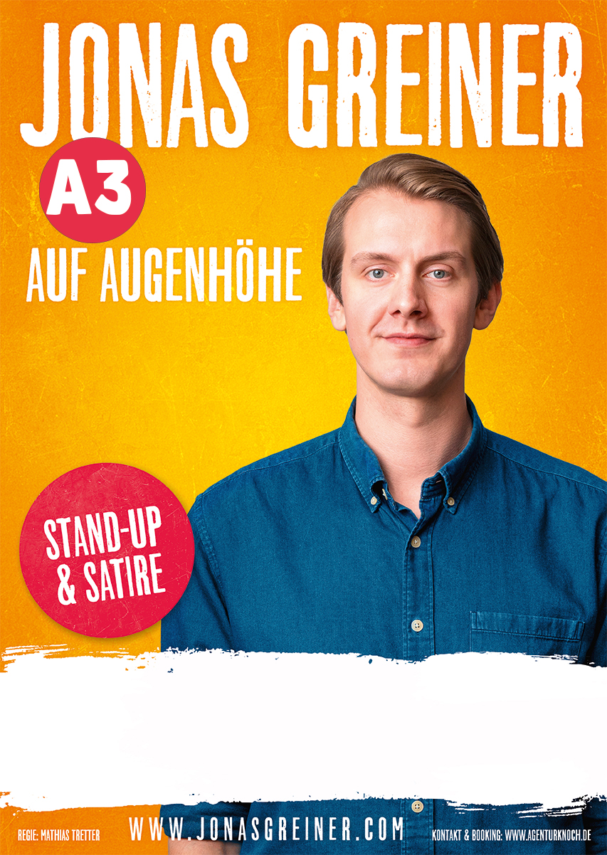 Der mehrfach preisgekrönte Stand-Up-Comedian und Kabarettist ist regelmäßiger Gast in TV-Shows wie dem „Vereinsheim Schwabing“ (BR), „Olafs Klub“ (MDR) oder bei NightWash. Videos seiner Auftritte wurden im Netz millionenfach geklickt. In seinem monatlichen Überblick bei YouTube blickt Jonas Greiner satirisch auf das gesellschaftliche und politische Geschehen.